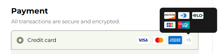Below are the available credit card options. The credit card companies listed here are the most commonly used ones on our website. If your credit card company is not listed, don't worry; we encourage you to proceed with your purchase.