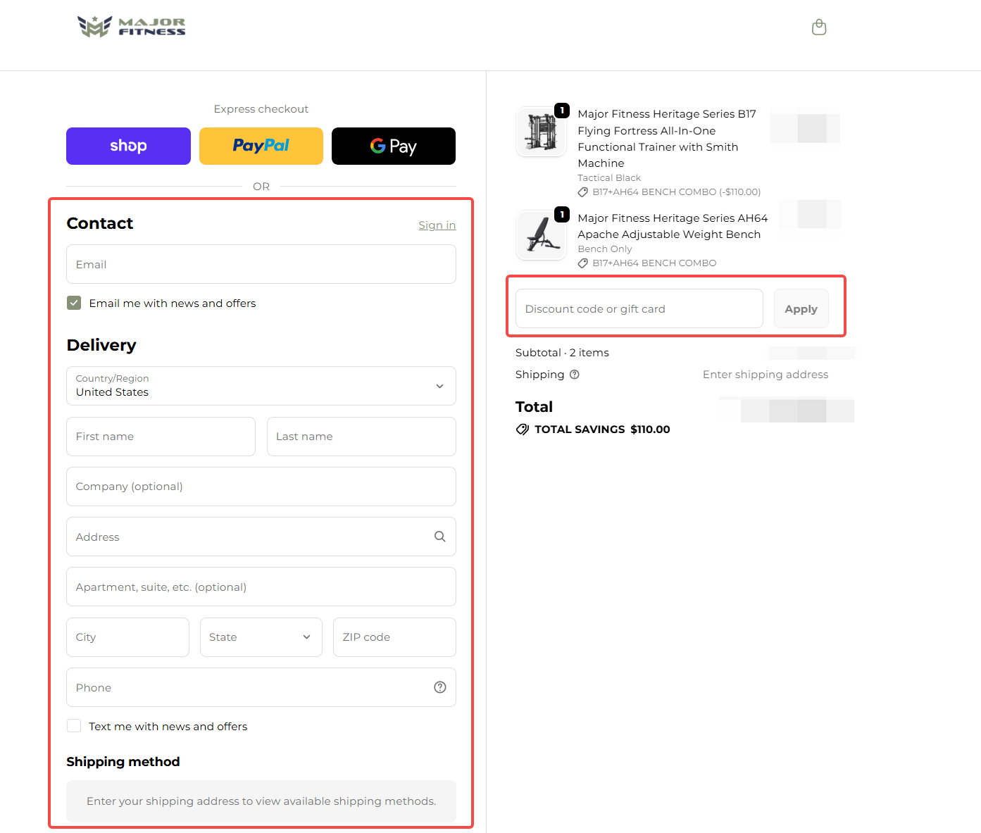 Please note that Major Fitness does not collect your credit/debit card number or personal information during the payment process. Additionally, each order only supports payment with a single bank card, and the use of multiple bank cards for a single order is not allowed. If you have any questions about transactions on our website, please consult your issuing bank.